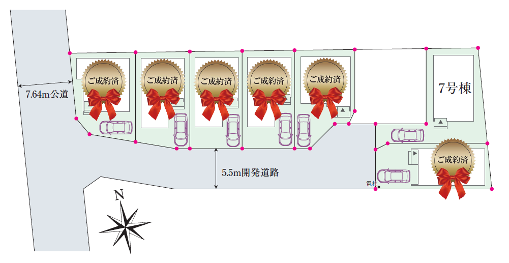 | 接道状況 | 南側5.5m開発道路、西側7.6m公道 |