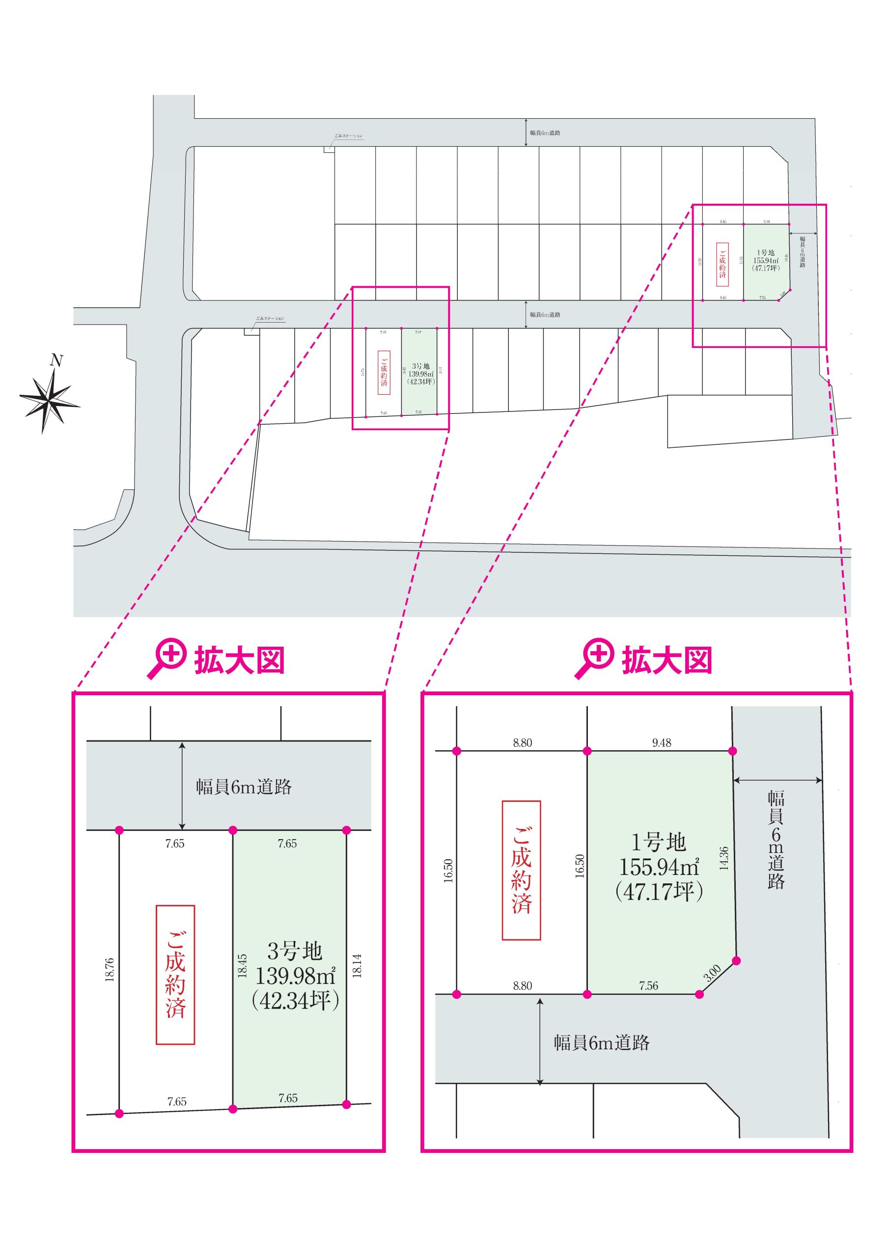 備考・制限等 | 建築基準法第22条区域、景観法、航空法、都市再生特別措置法。 土留めが必要な場合は宅盤面の高い区画の方が施工して下さい。 |