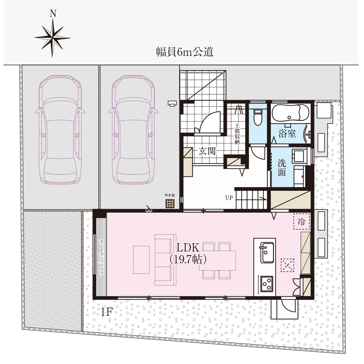 | 間取り | 3LDK+土間収納 +WIC+青空リビング +固定階段付小屋裏収納 |