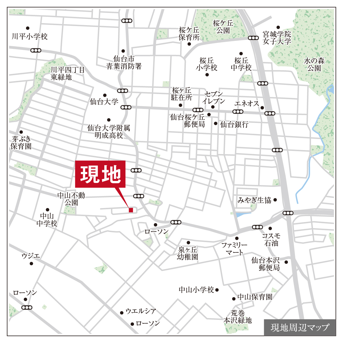 | 交通 | JR仙山線「北山」駅徒歩23分 バス便「北仙台駅」より13分 バス停「桜ケ丘1丁目」停歩3分 |