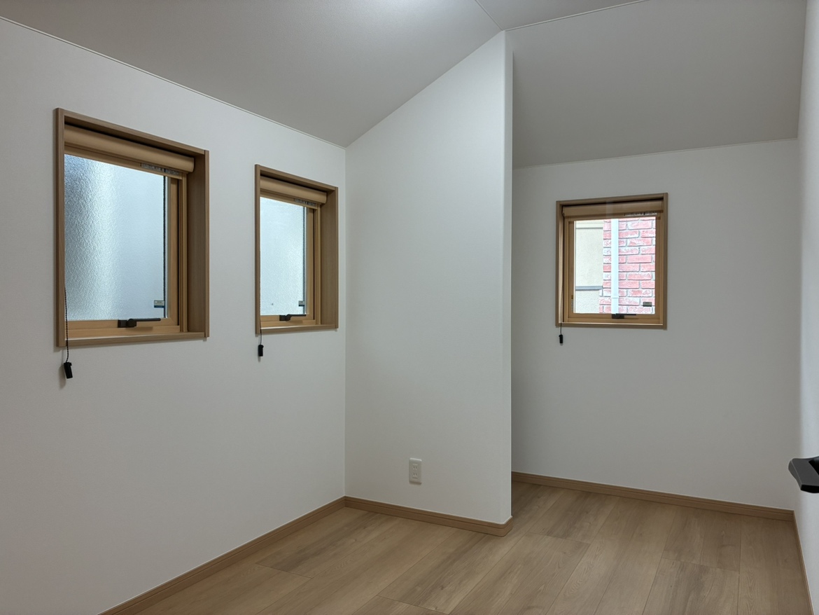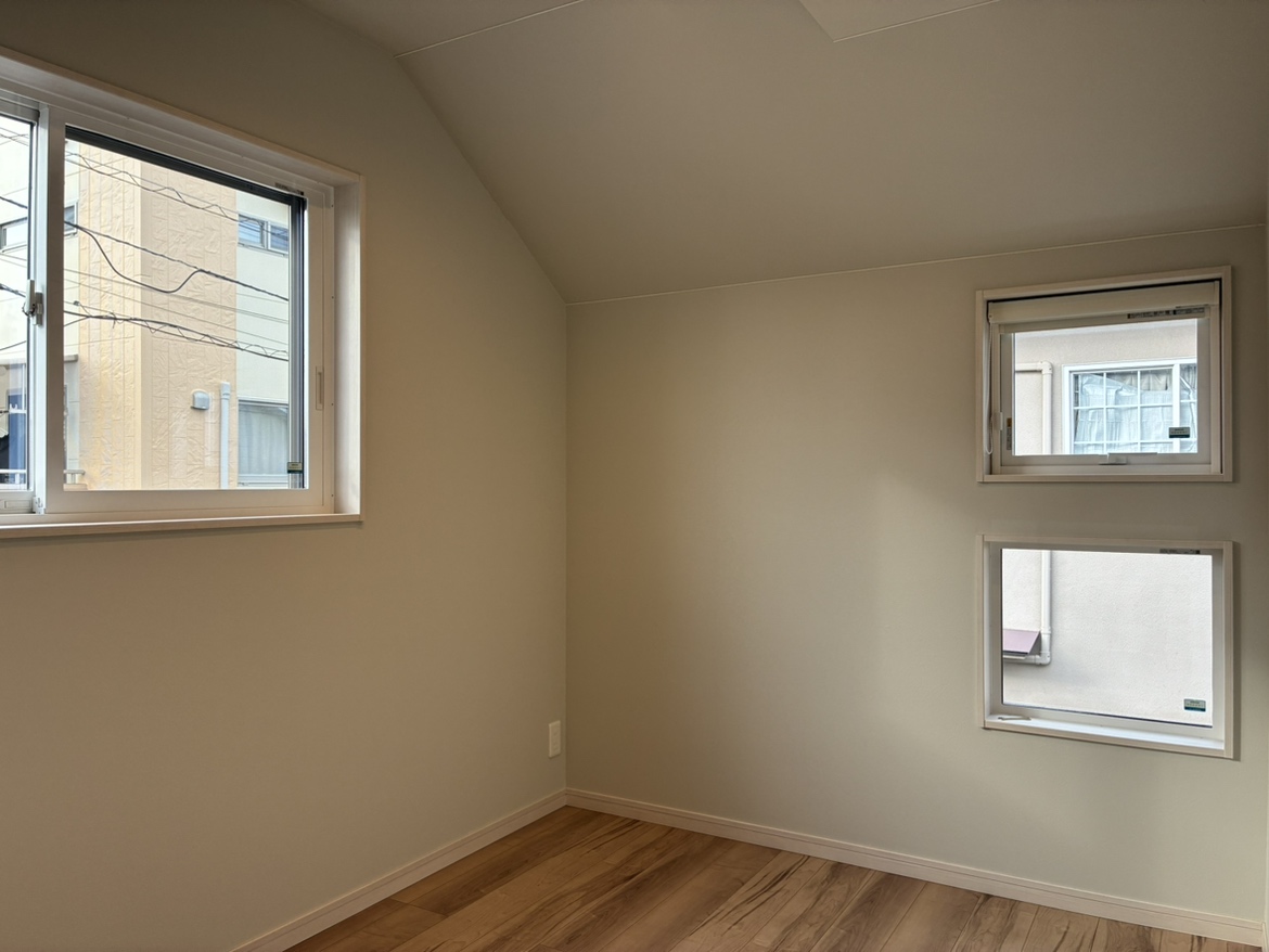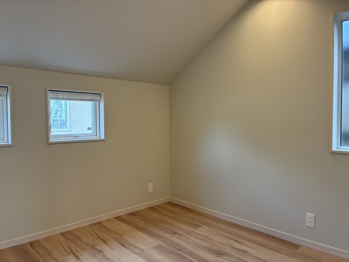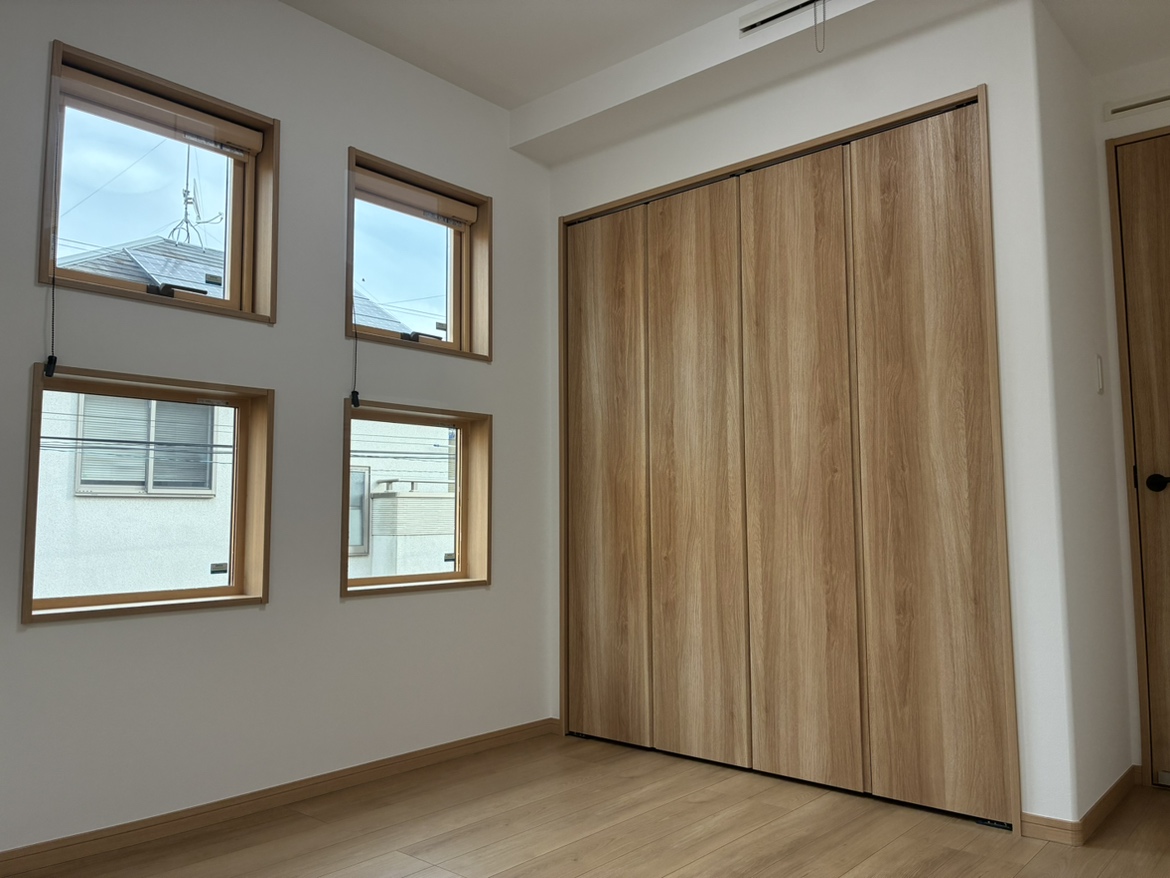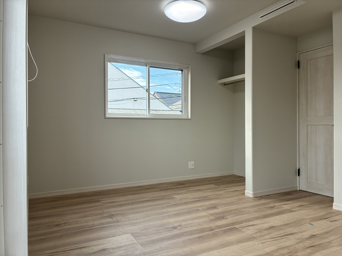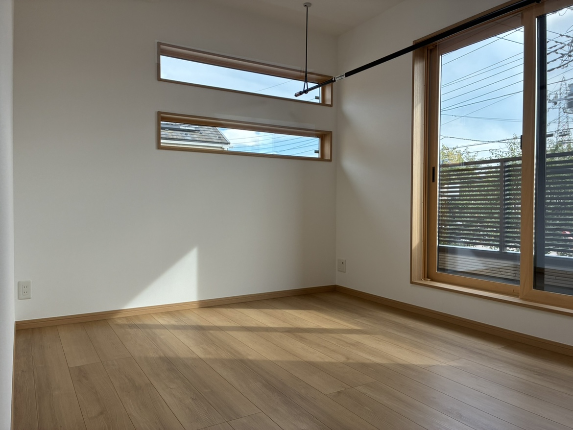 大きなベッドも配置しやすい広さで、ご夫婦・ご家族の寝室としてもおすすめ。東側の窓は高い位置に設置しており、家具の配置を邪魔しない設計です。