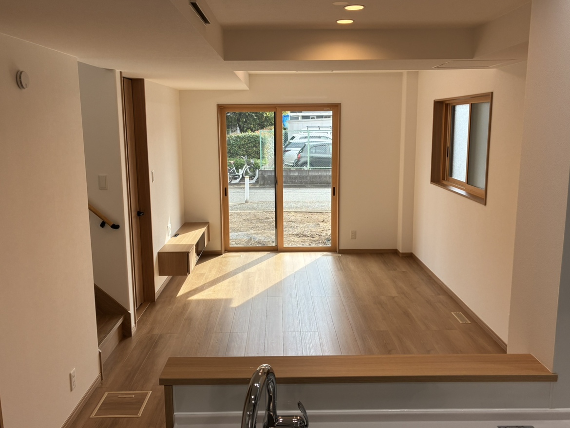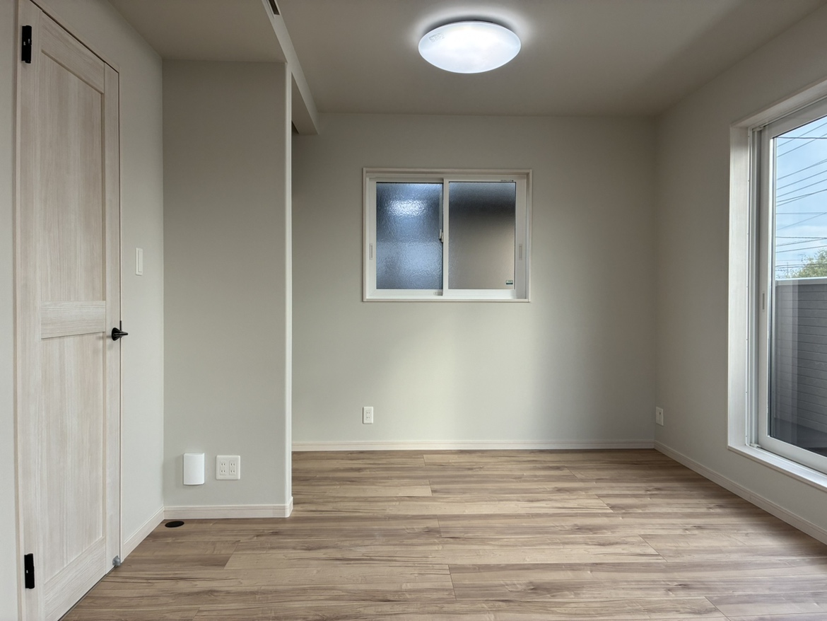 窓には木目調の窓枠を採用し、より温かみのある雰囲気の空間に。飽きのこない、ナチュラルでシンプルな内装が魅力です。