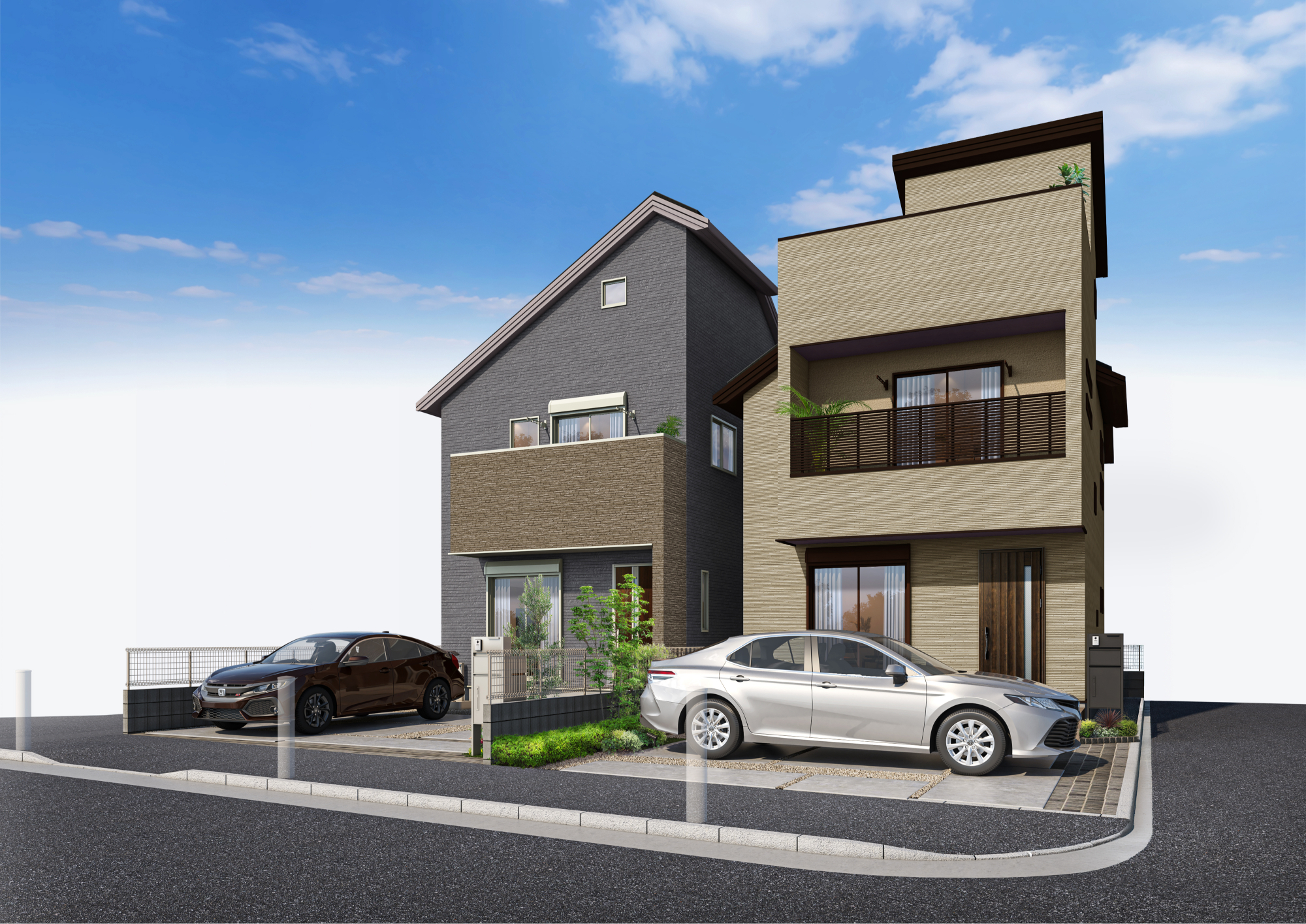 異なる間取り、外観デザインの新築戸建、全2棟が誕生。豊富な収納を備え、家事・生活動線に配慮したこだわりの住まいです。ライフスタイルにあわせてお好みの一邸をお選びいただけます。