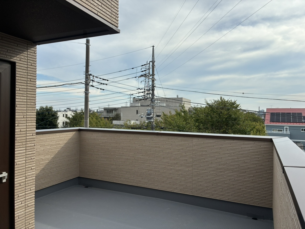 落ち着いたベージュの外観に、格子のバルコニー手摺が目を惹く、洗練された外観。全居室5帖以上あり、プライバシーが守られた青空リビングではBBQやプールなど、多彩に利用できます。