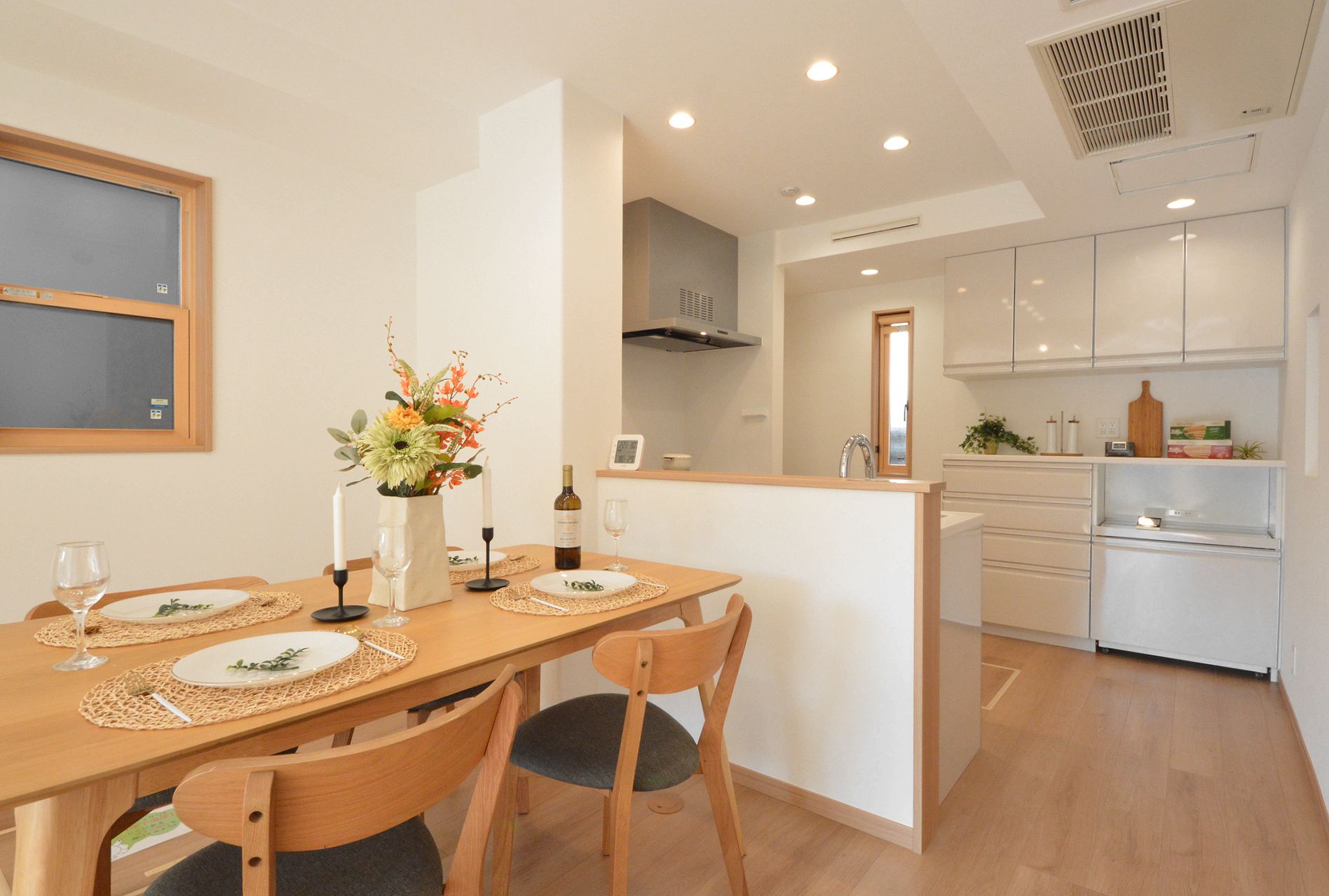 ダイニングテーブルをキッチン横に配置することができ、料理の配膳や片付けがスムーズに行えます。また、お子様の勉強を見守りながら料理を進めていただけます。