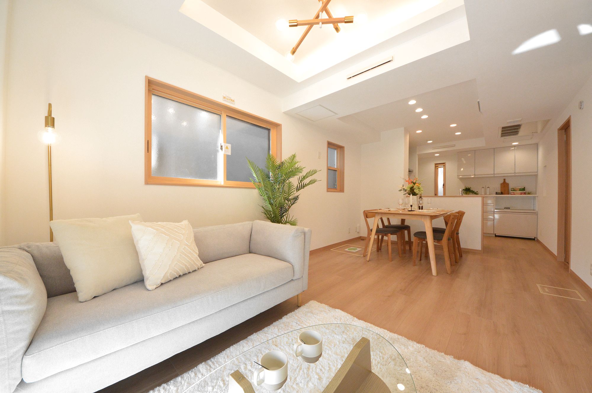 2面採光で、通風も良好です。木目調の床材を使用したナチュラルな雰囲気の内装で、様々なテイストのインテリアにも合わせやすそうです。