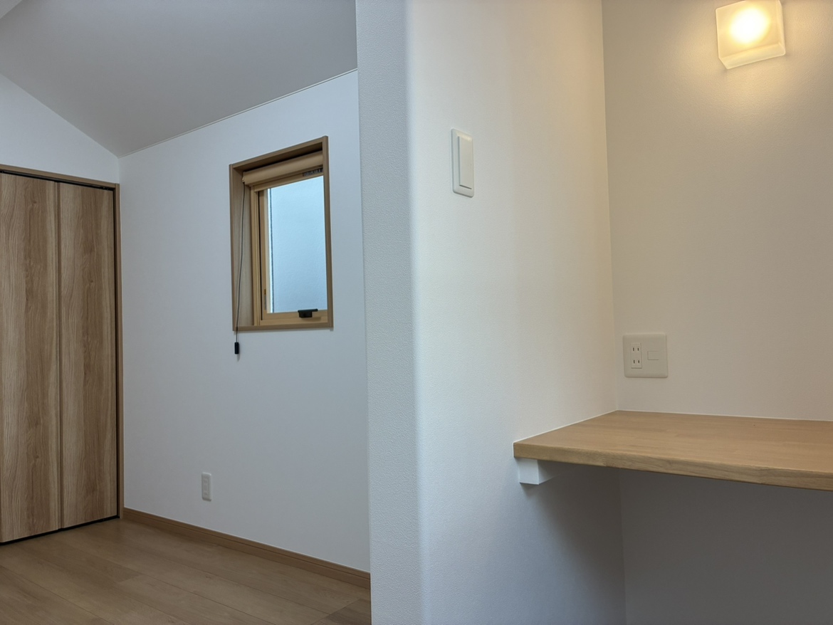 子供部屋や書斎・在宅ワークスペースにおすすめの洋室。備え付けのカウンターがあり、デスクを設置する手間が省けます。