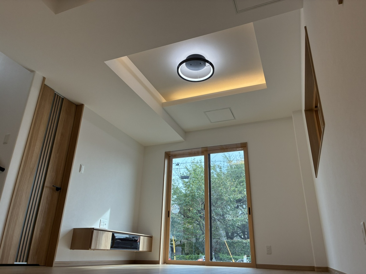 デザイン性のある折り上げ天井を採用。間接照明を設置しており、ゆったりと落ち着ける空間を演出します。昼と夜とで、違った雰囲気を楽しめそうです。