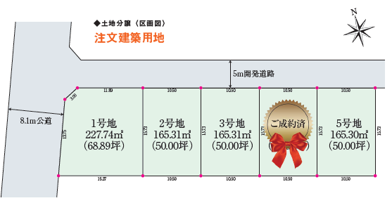 | 土地面積 | 165.31㎡(50.00坪)〜227.74㎡(68.89坪) |