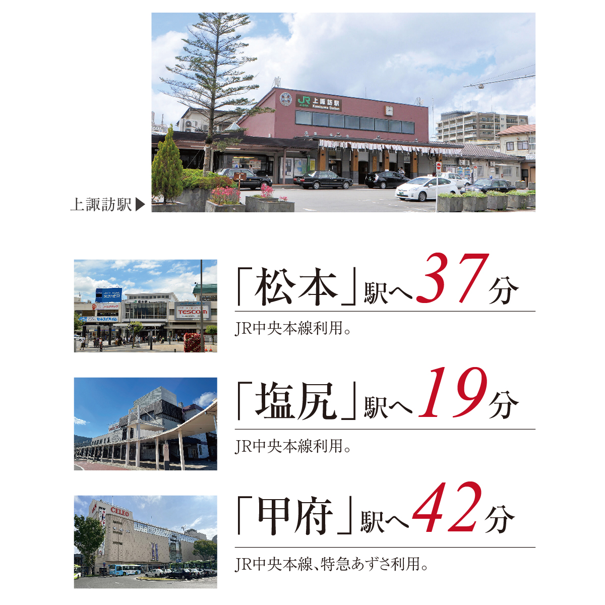 | 交通 | JR中央本線「上諏訪」駅利用 |