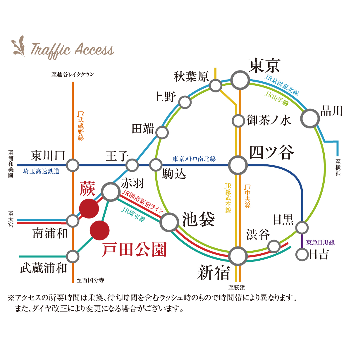 | 交通 | JR京浜東北線「蕨」駅:徒歩18分 JR埼京線「戸田公園」駅:徒歩24分 |