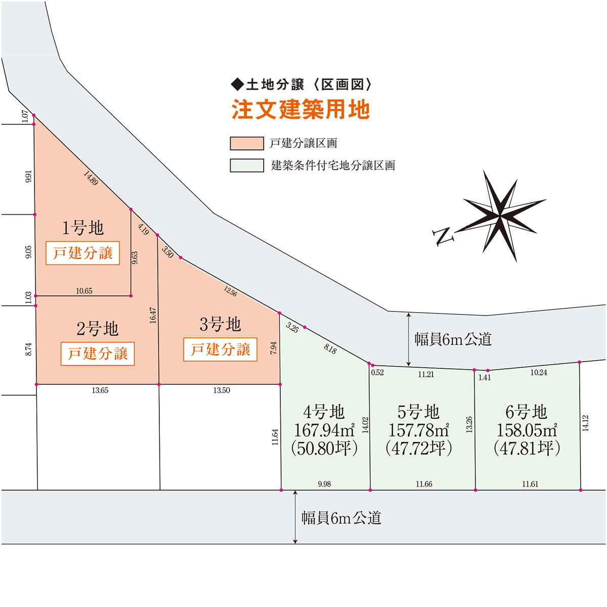 | 土地面積 | 157.78㎡(47.72坪)〜167.94㎡(50.80坪) |