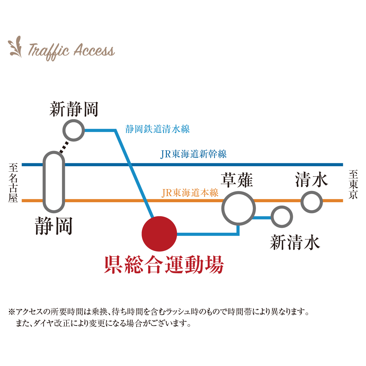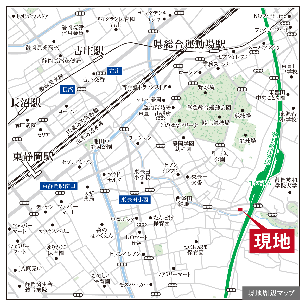 | 交通 | 静岡清水線「県総合運動場」駅徒歩23分 しずてつジャストライン「動物園入口」駅徒歩5分 |