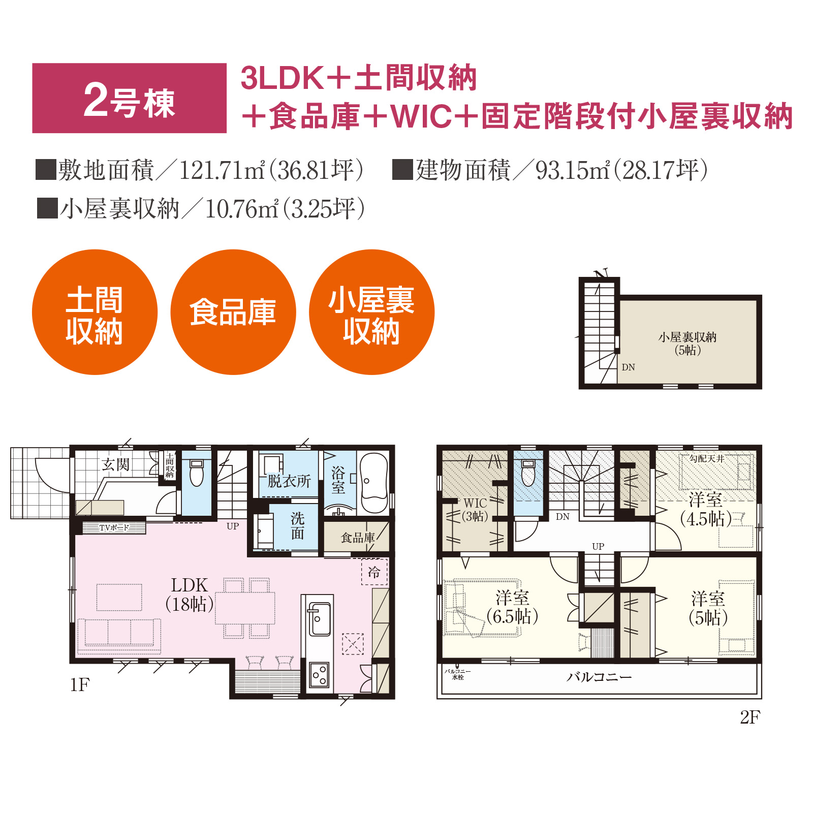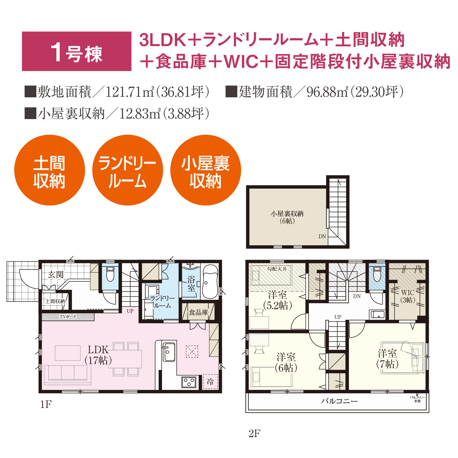 | 建物面積 | 93.15㎡(28.17坪)〜96.88㎡(29.30坪) |