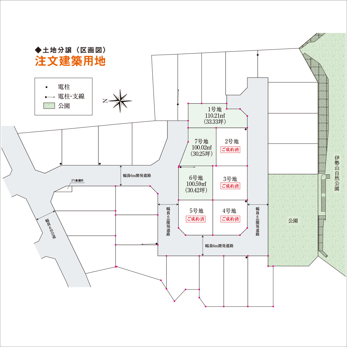 | 土地面積 | 100.02㎡(30.25坪)〜110.21㎡(33.33坪) |
