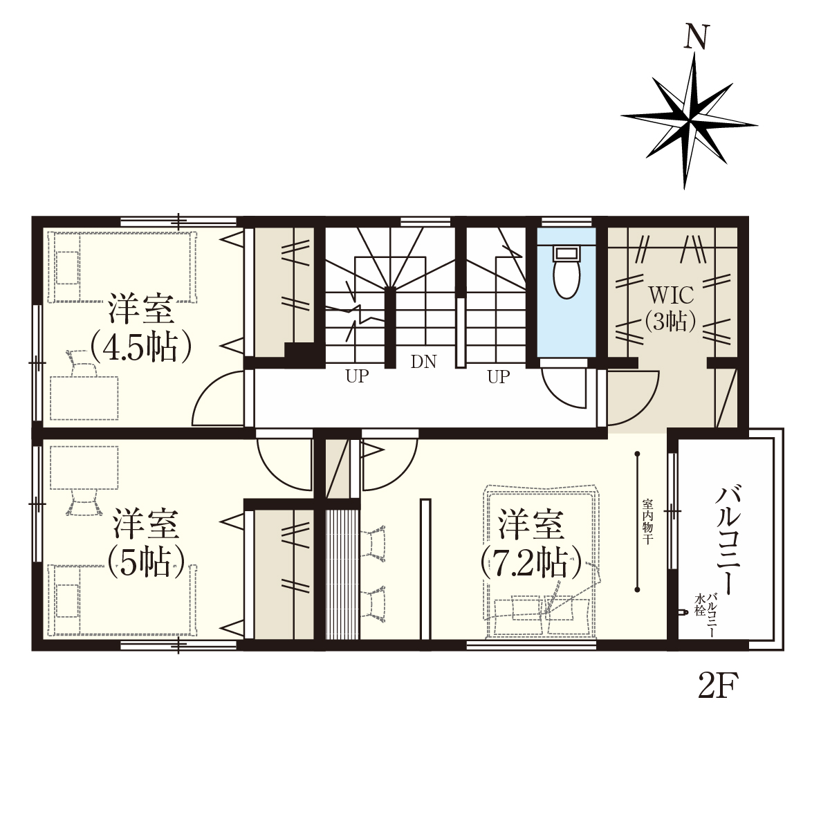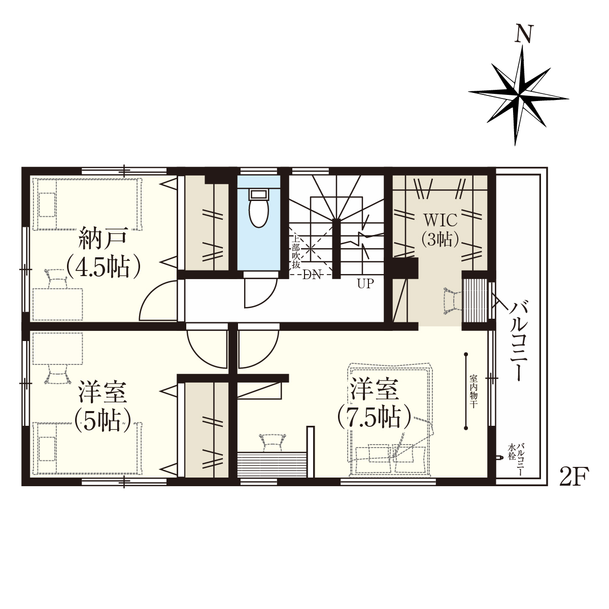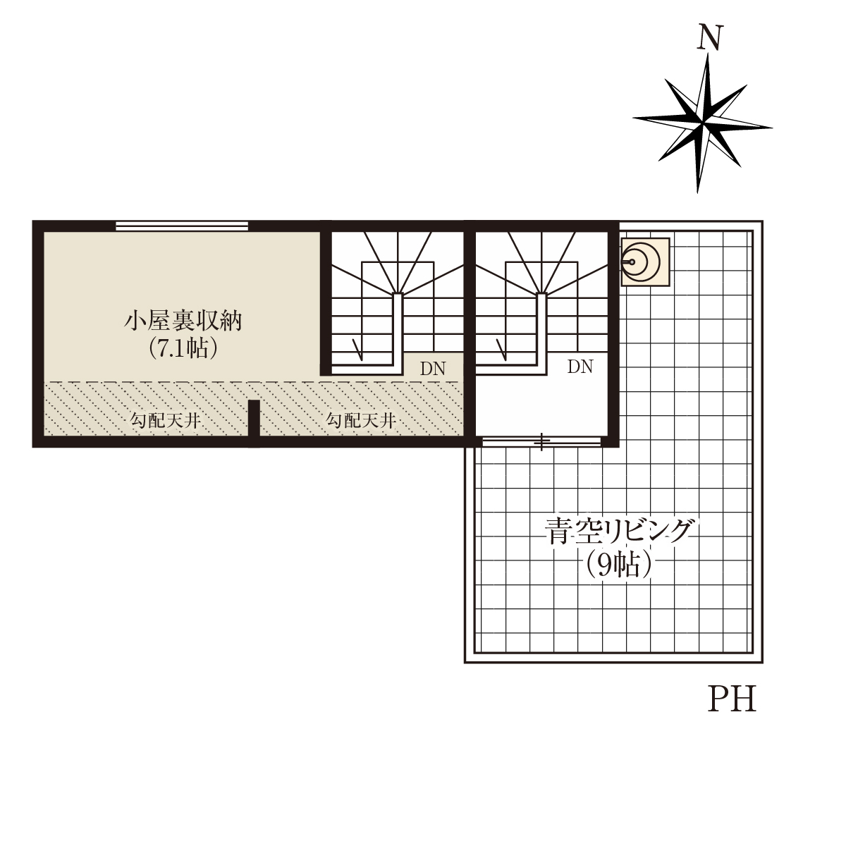 | 間取り | 2SLDK+WIC+固定階段付小屋裏収納〜3LDK+土間収納+WIC+青空リビング+固定階段付小屋裏収納 |