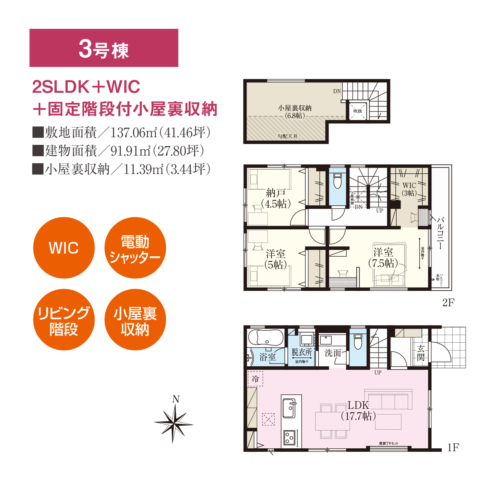 | 建物面積 | 91.91㎡(27.80坪)〜101.03㎡(30.56坪) |