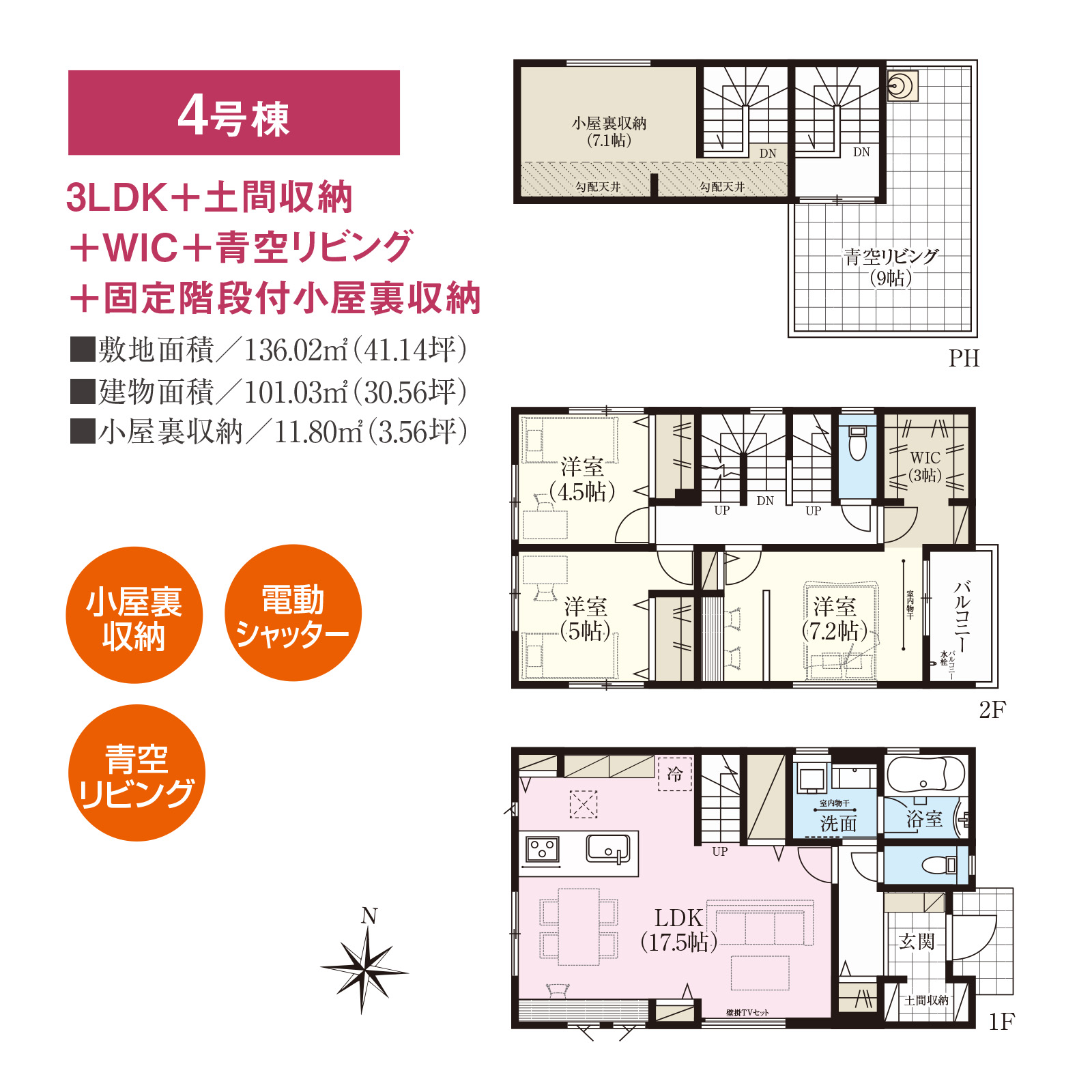 | 土地面積 | 136.02㎡(41.14坪)〜137.06㎡(41.46坪) |
