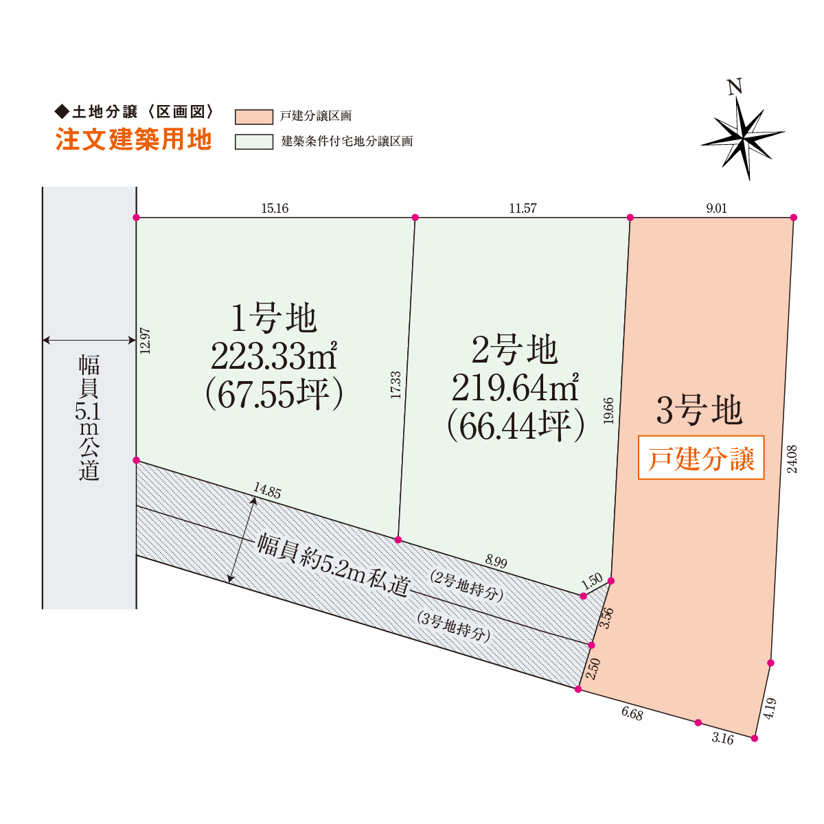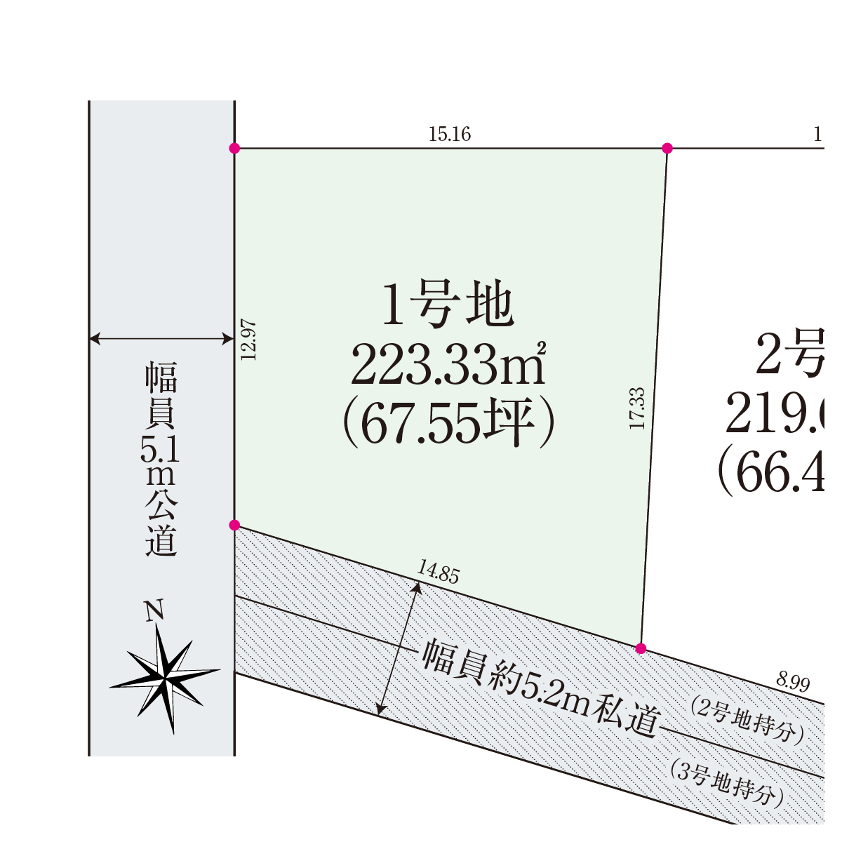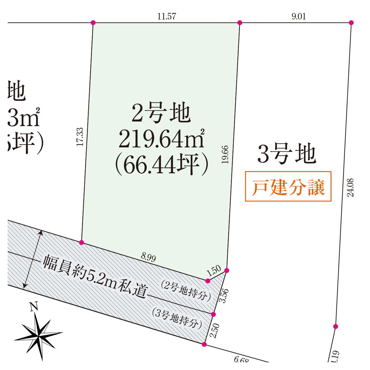 | 私道・その他共有持分 | 2号地、私道持分66.0㎡別途有 |