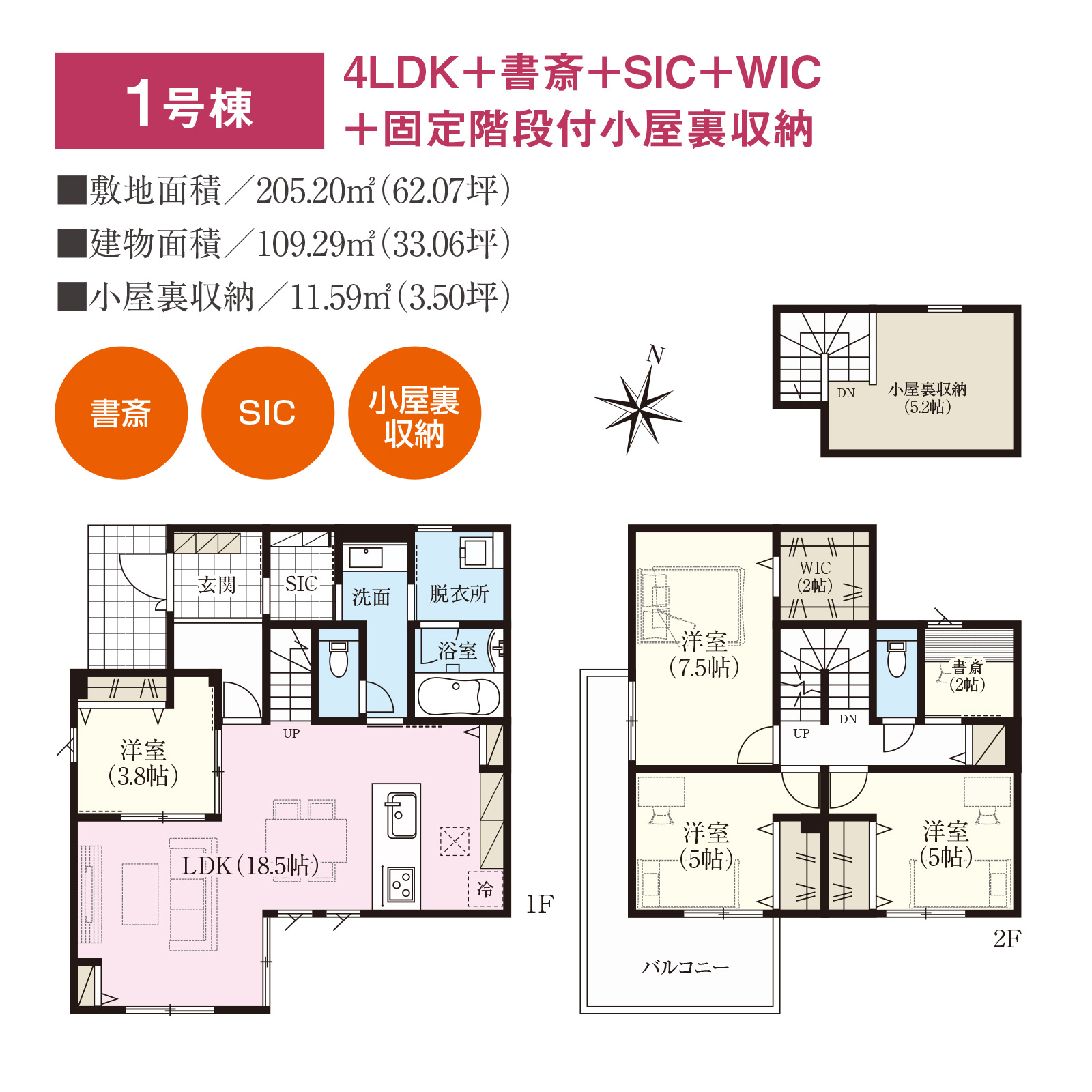 | 間取り | 4LDK+書斎+SIC+WIC+小屋裏収納 |