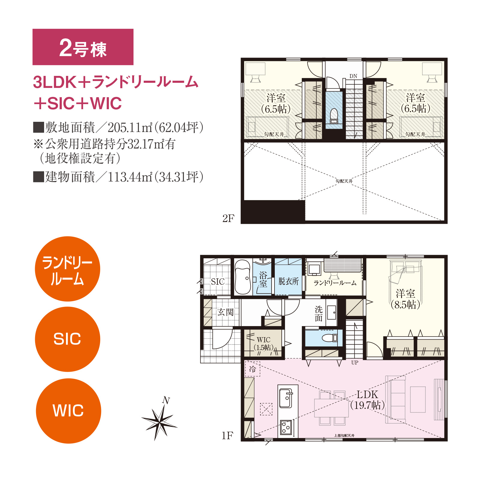 ![]() | 2号棟 | 3LDK+ランドリールーム+SIC+WIC | 205.11 | 62.04 | 113.44 | 34.31 | 4,350万円 | ▼ |