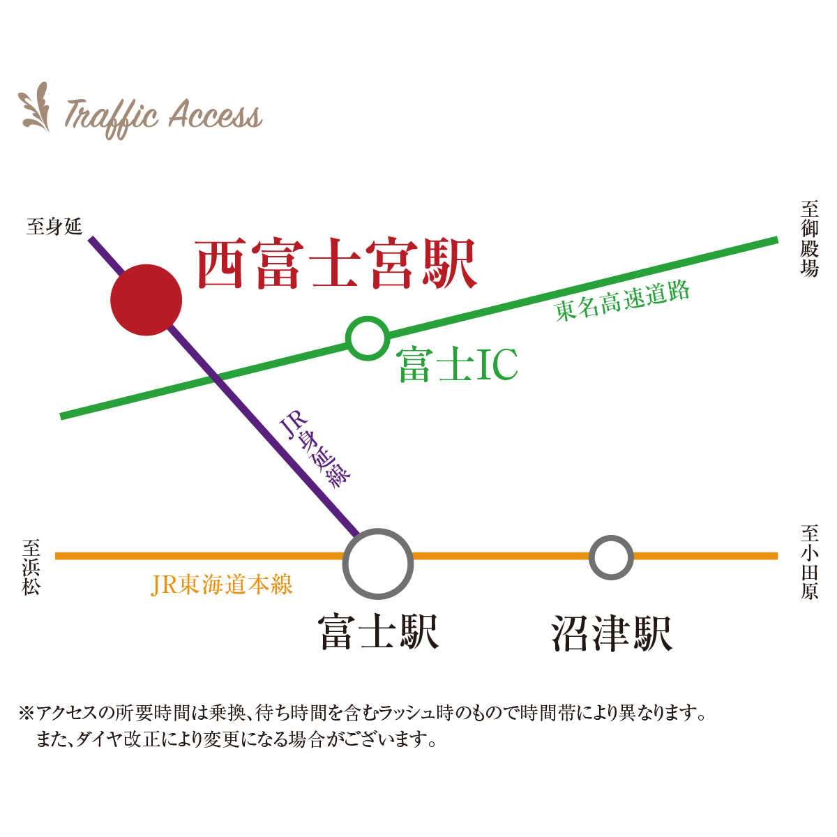 | 交通 | JR身延線「西富士宮」駅徒歩19分 富士宮市コミュニティバス「淀師区民館前」停徒歩2分 |