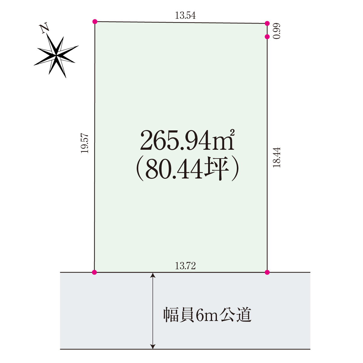 東西13M超とゆとりがある為豊富なプランが建築可能です。平屋プランも十分に入る広さとなります。