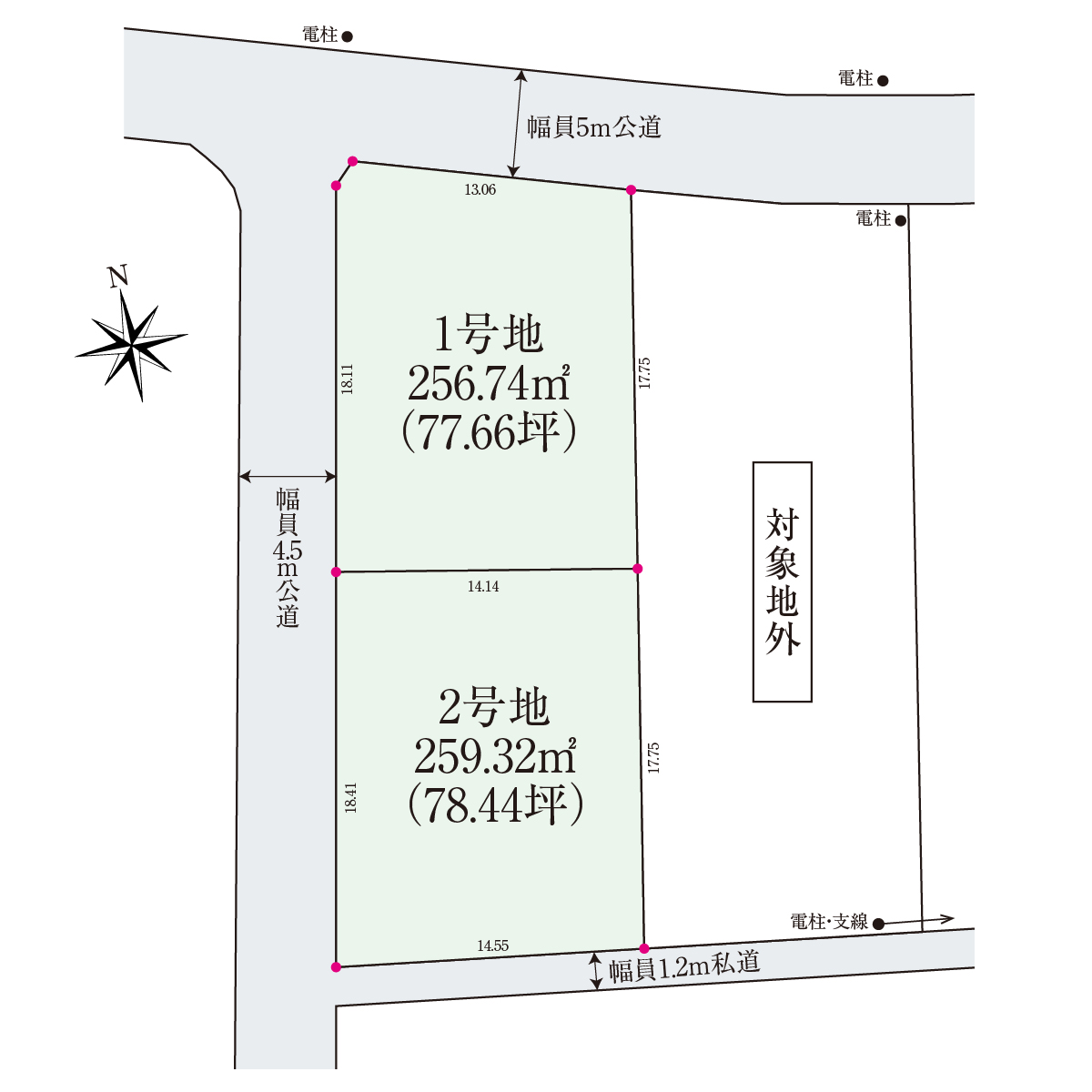 | 土地面積 | 256.74㎡(77.66坪)〜259.32㎡(78.44坪) |