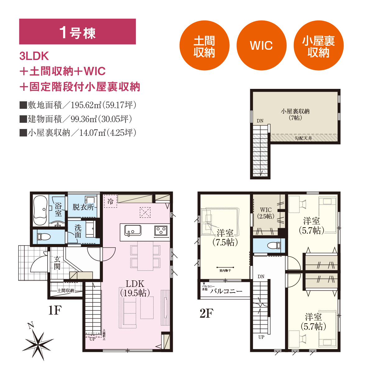 | 建物面積 | 99.36㎡(30.05坪)〜105.99㎡(32.06坪) |