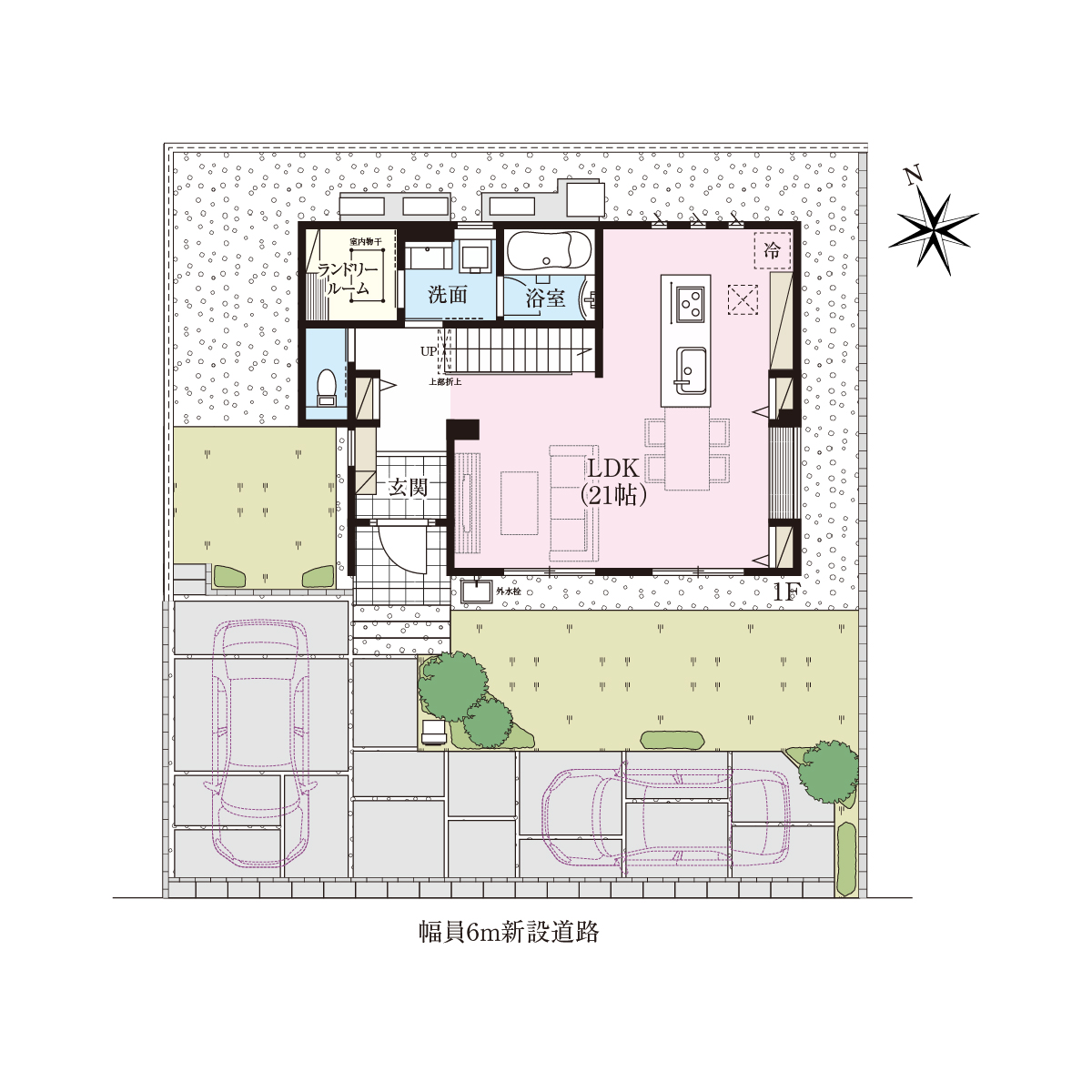 外部者の通りぬけがない、安心して暮らせる居住者への安全性が考慮された街区です。