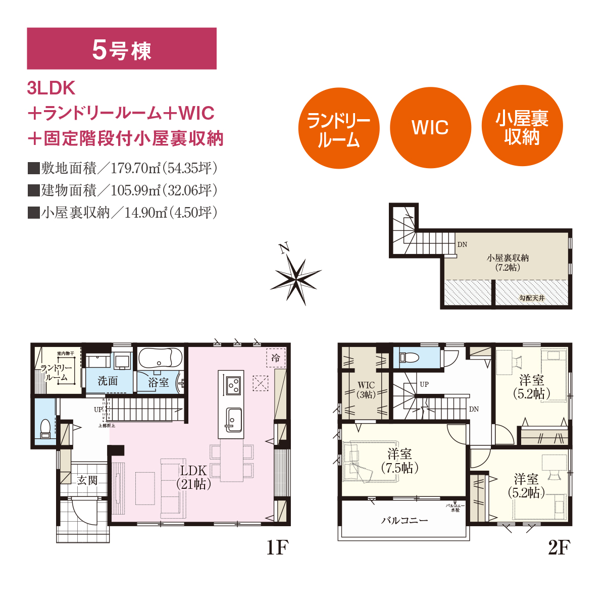 | 間取り | 3LDK+固定階段付小屋裏収納〜3LDK+ランドリールーム+固定階段付小屋裏収納 |