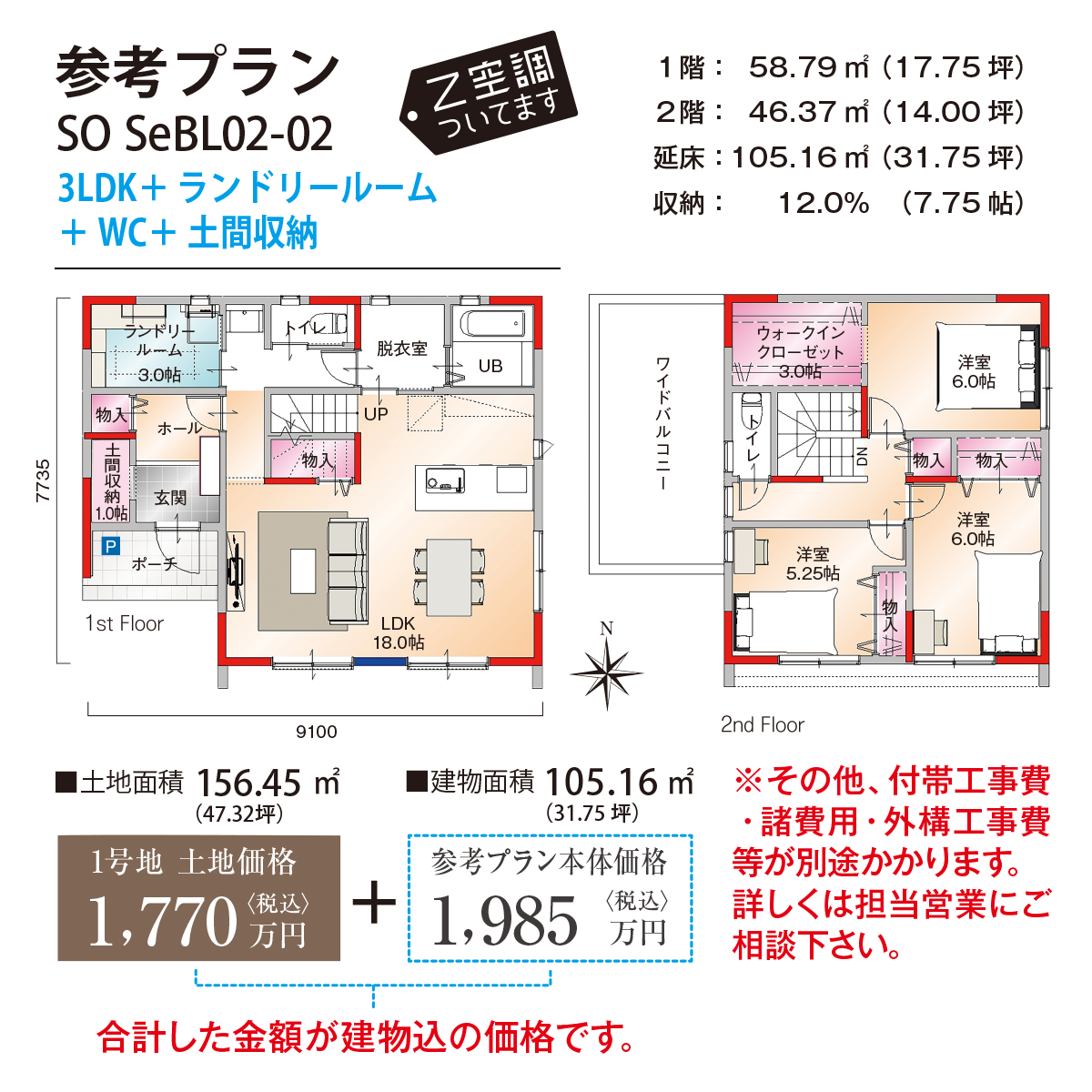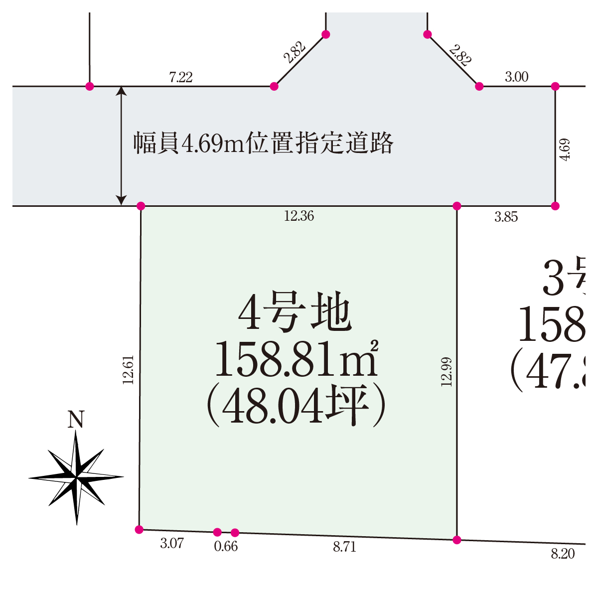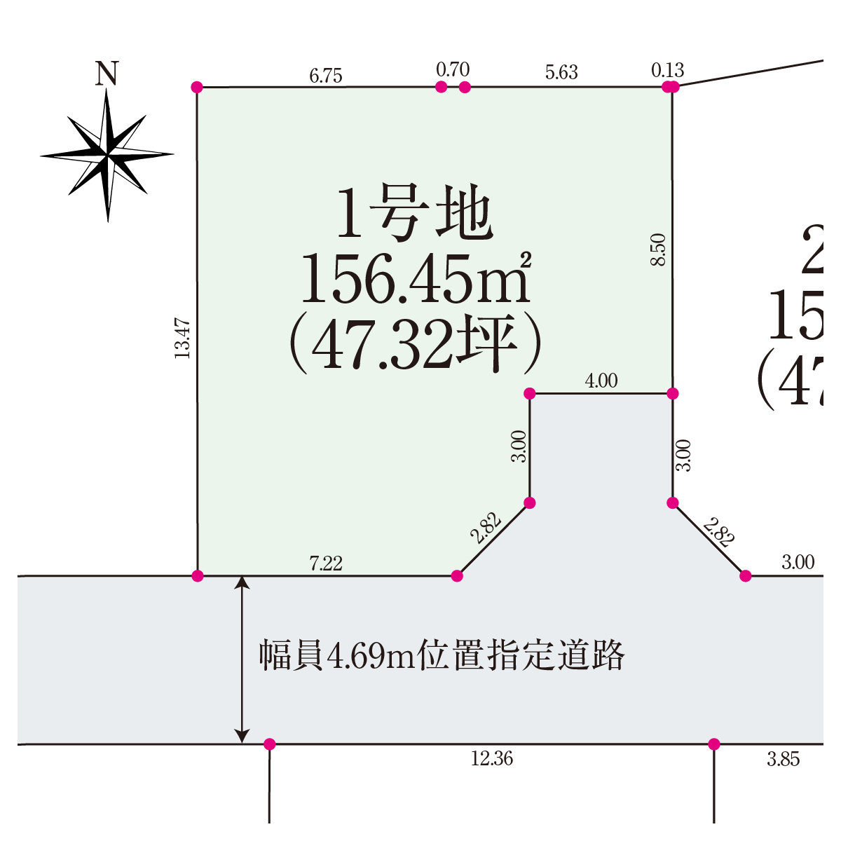 | 土地面積 | 156.45㎡(47.32坪)〜158.81㎡(48.04坪) |