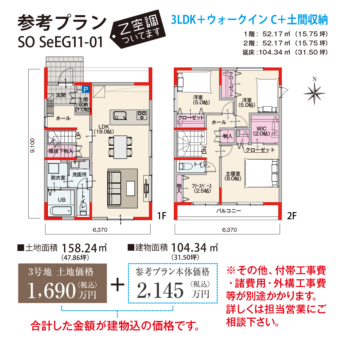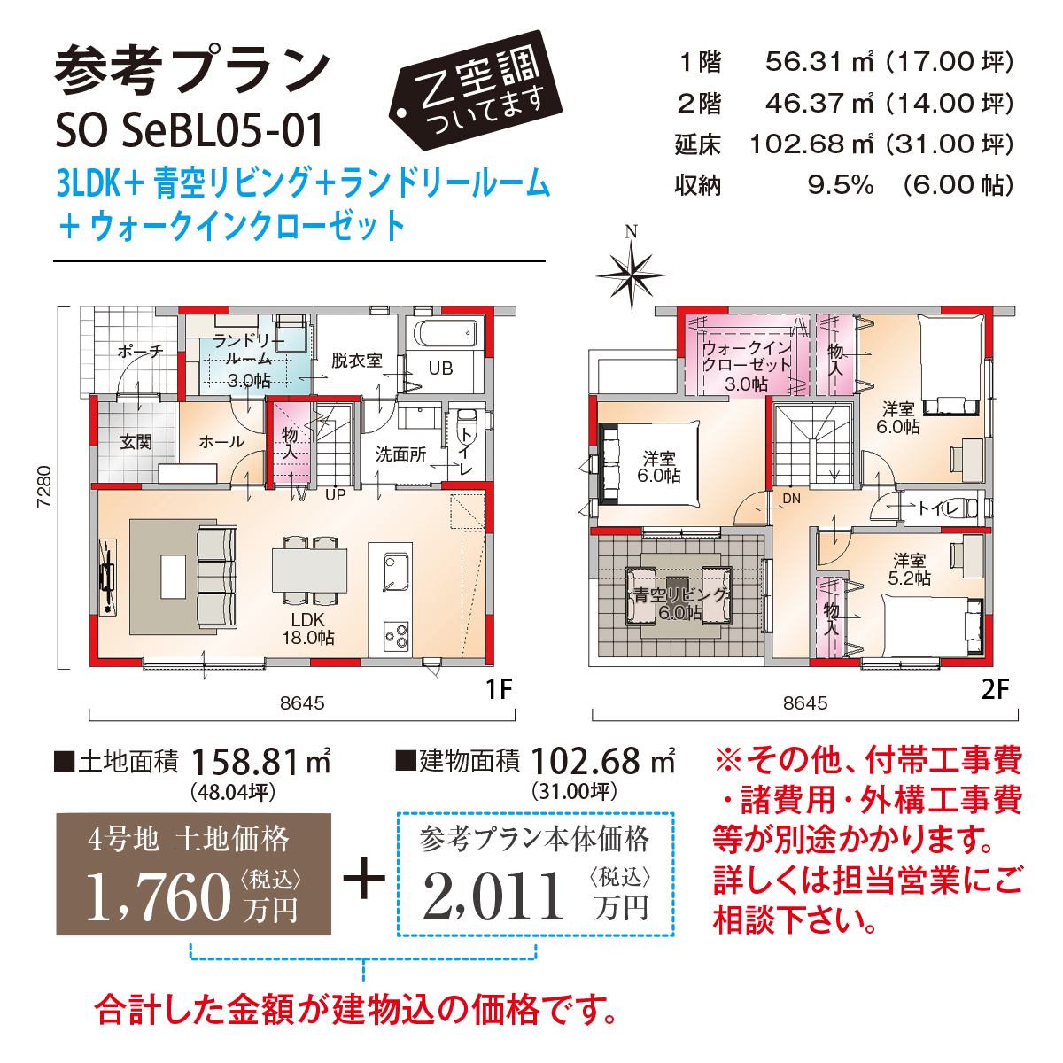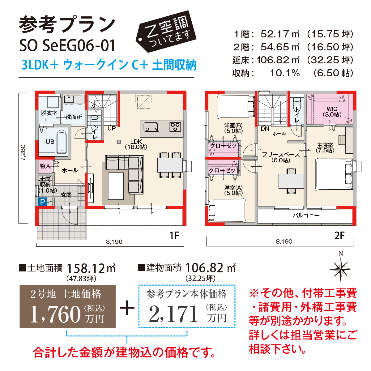 | 土地面積 | 156.45㎡(47.32坪)〜158.81㎡(48.04坪) |
