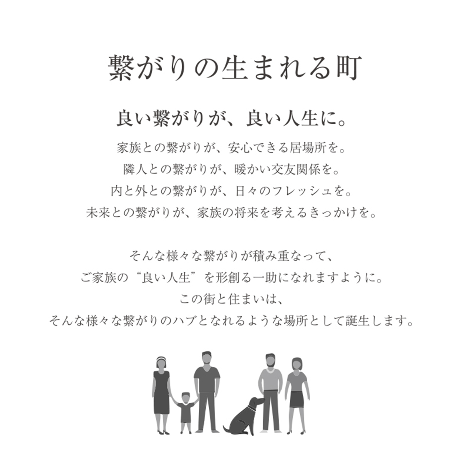 繋がりの生まれる町、美しい街並みが造られ、第3次販売で完成いたします。