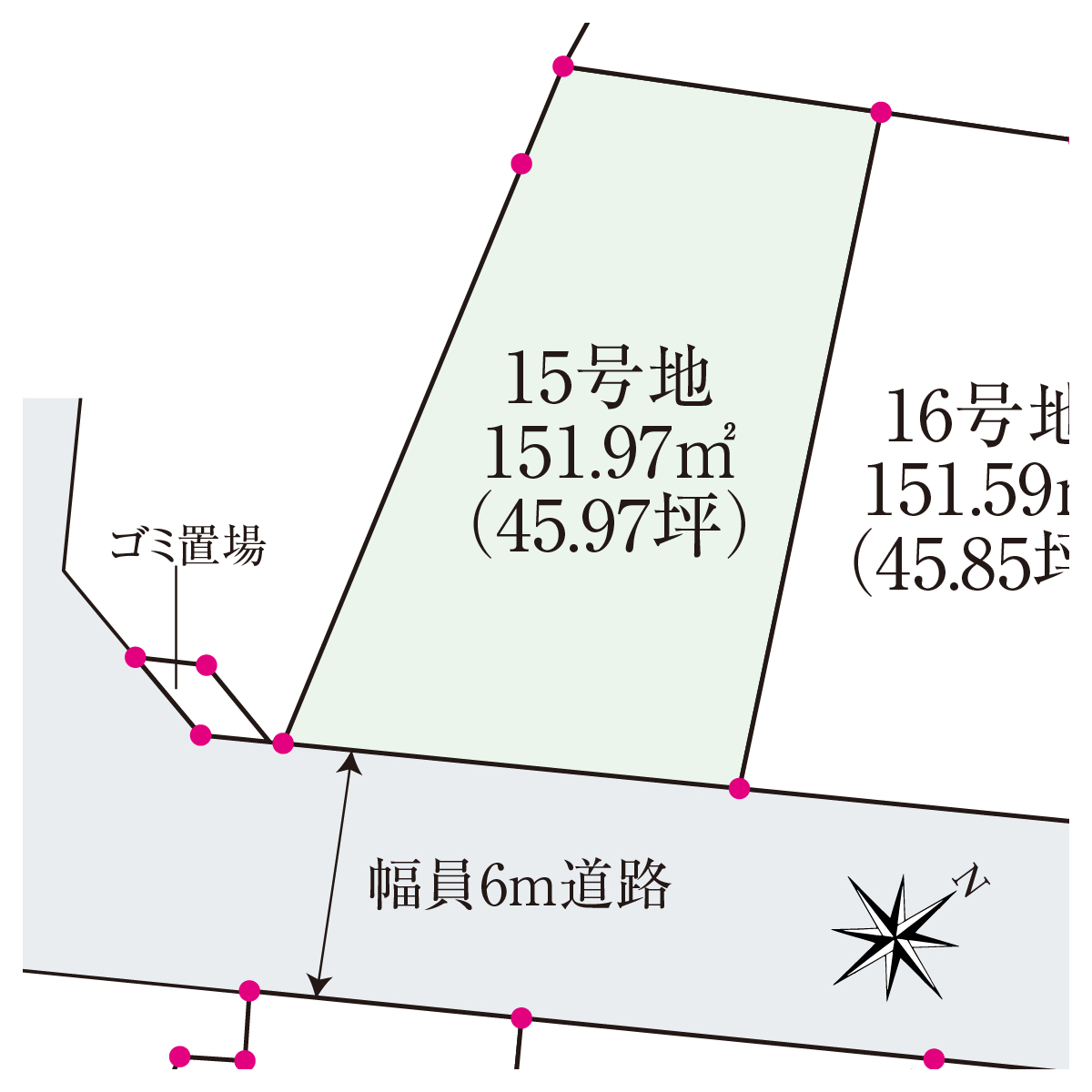 | 土地面積 | 151.38㎡(45.79坪)〜151.97㎡(45.97坪) |