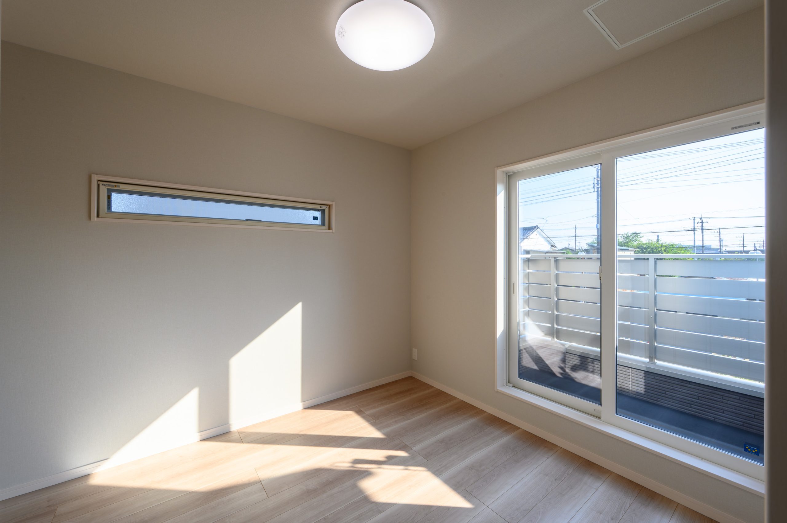 2面採光を確保しているので、換気もスムーズです。腰高窓で家具も配置しやすいです。