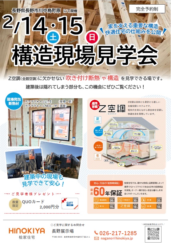 2/14➡2/15 構造現場見学会を開催します
