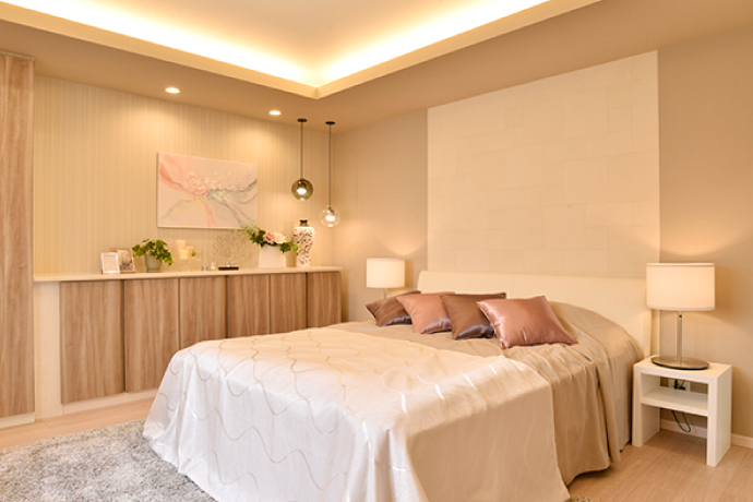 スクエアですっきりしたデザインが印象的な外観。建物の中心に設けられた大きなパティオは、周囲からの視線を遮りプライバシーが守られた特別な屋外空間。リビング・ダイニングと一体で使え玄関からの出入りもできるので、親戚や友人を招き大人数でのバーベキューも楽しめます。また、屋上の青空リビングはパティオよりプライベートで使いやすい空間。開放的な青空の下で周囲の眺望を楽しんだり、家族でゆっくりとした時間を過ごせます。2階のブティッククローゼットは家族分の収納に2面の全身鏡のあるフィッティングスペースを設計。その他、大容量でスッキリ収納出来る「キッチンウォールキャビ」や共有スペースに設けられた「スタディコーナー」など、これから始まるマイホームづくりと新生活をより豊かにするための具体的なアイデアがたくさん詰まった足利展示場を楽しみながらゆっくりと体感してください。