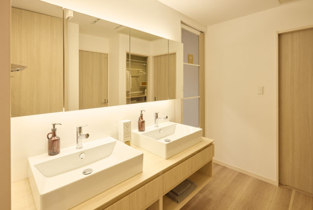 また、2 ボウル洗面ドレッサー『フーガデュオ』、衣類や小物の収納だけでなくディスプレイも楽しめる『ブティッククローゼット』、屋上庭園『青空リビング』など、「桧家住宅」ならではのデザイン性や利便性を高めたオリジナル設備もお試しいただけます。