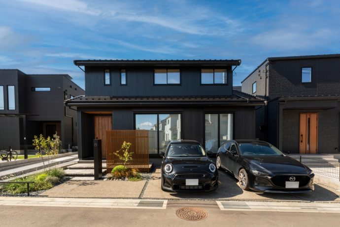 NEW家族のつながりを感じる吹き抜けのある家 間取り:3LDK+青空リビング+ロフト 延床面積:105.15㎡(31.75坪) 家族構成:3名(ご夫婦+お子様1名) 2階建てジャパニーズモダン 詳細を見る