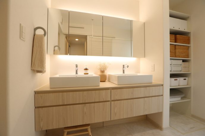 そんな中訪れた桧家住宅の展示場で見た、ヒノキヤオリジナルのキッチン「クチーナ・グランデ」や、2ボールの洗面台「フーガデュオ」のデザインを気に入り、桧家住宅とのお付き合いがスタートしました。