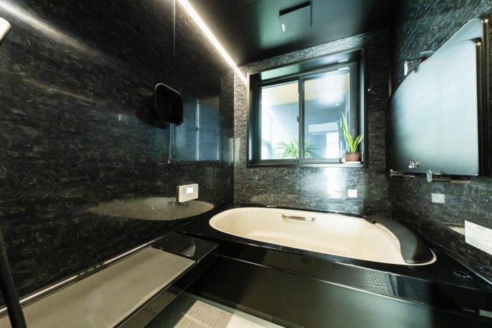 旦那様のお気に入りはやはり、12畳ほどの「アクティブガレージ」。バイクや日曜大工、釣りなど多趣味な旦那様の夢が詰まった空間は、「好きなことを楽しめる最高の秘密基地」とご満悦のご様子。一方の奥様は、坪庭を眺めながら入浴できるお風呂にこだわりました。「肩湯の出る浴槽で1日の疲れを癒しています」と笑顔を見せます。