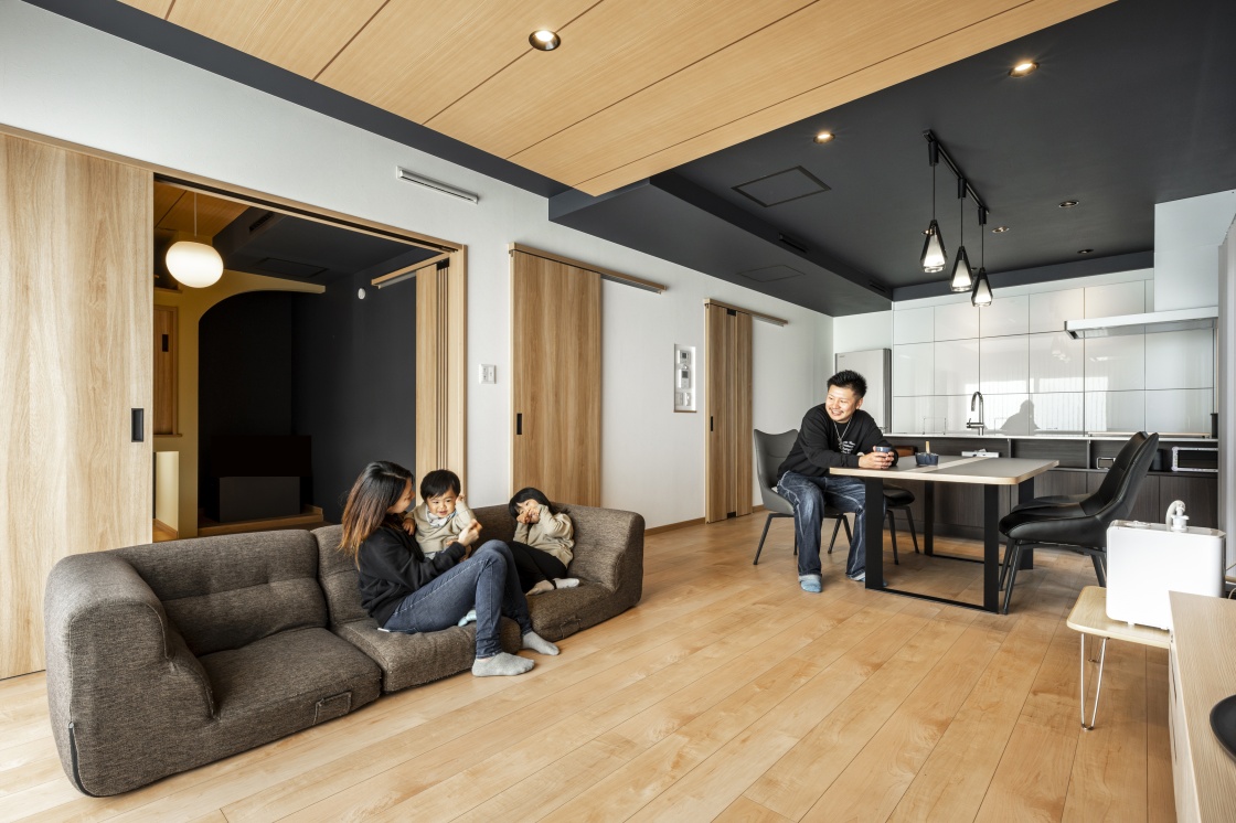 1階LDKのセレクテリアとしてお選びいただいたのは「ジャパニーズモダン」です。「和モダンな木目調が気に入った」とK様がお話しくださった通り、温かみのある木目と洗練された現代的なデザインが見事に調和した空間となりました。