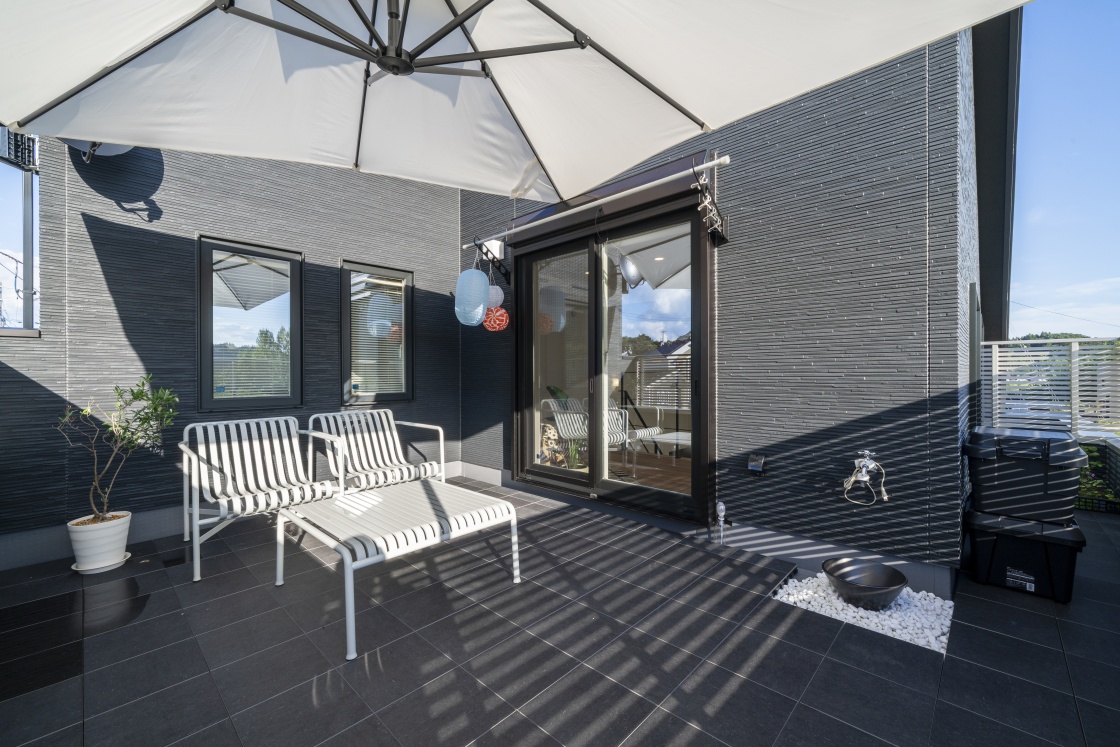 I様にとってこの青空リビングは「休日を過ごす大切な場所」とのこと。周囲の視線を気にすることなくプール遊びを楽しんだり、BBQを開いたりと、日常から少し離れた特別な時間を過ごせる空間となりました。