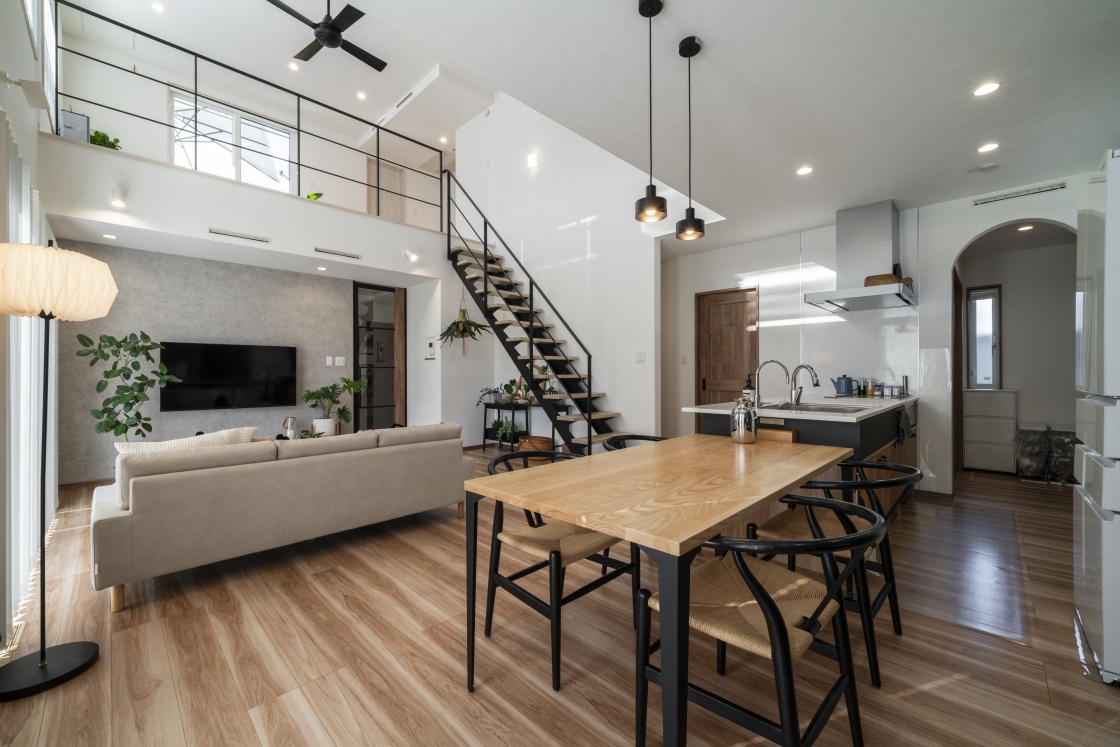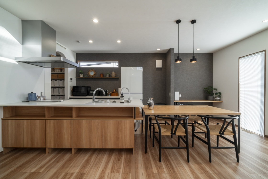 ダイニングテーブルとの一体感も心地よく、家族の団らんを大切にする暮らしが想像できる空間となりました。