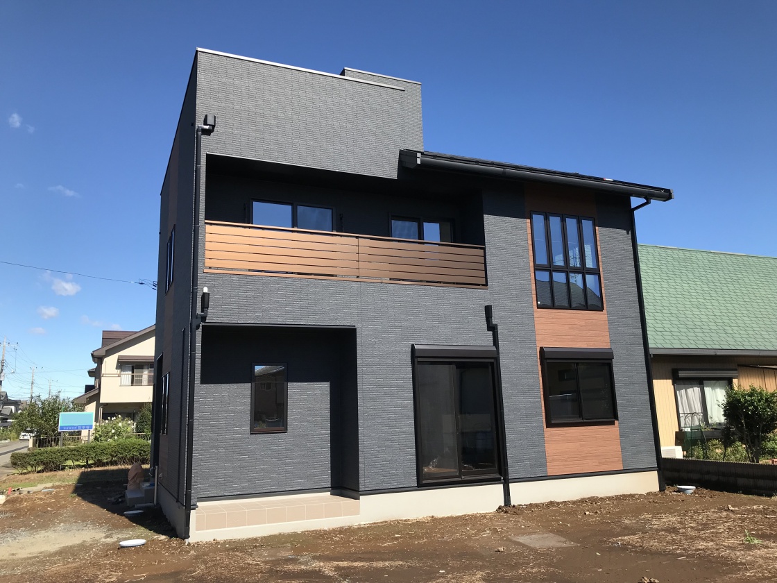 ブラックのベースに、ブラウンのラインで南側でも西側からでも、おしゃれなスタイリッシュの仕上がりです。