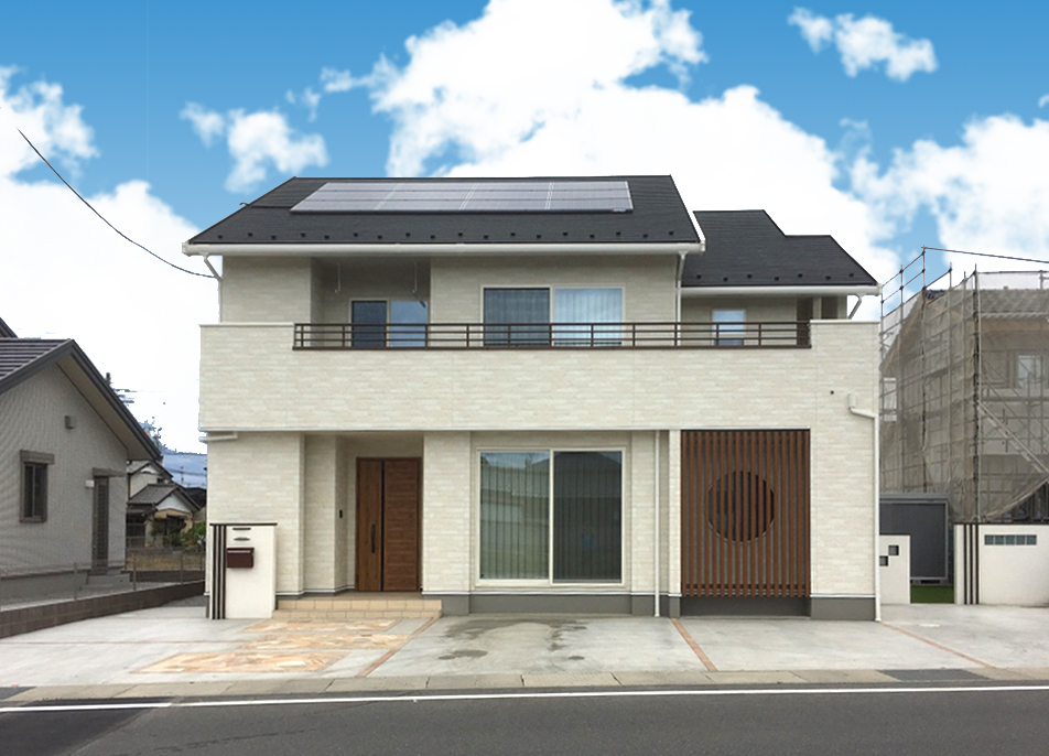 丸窓と格子で外観のアクセントへ。LDKに隣接した畳ルームで広々とした空間を演出。