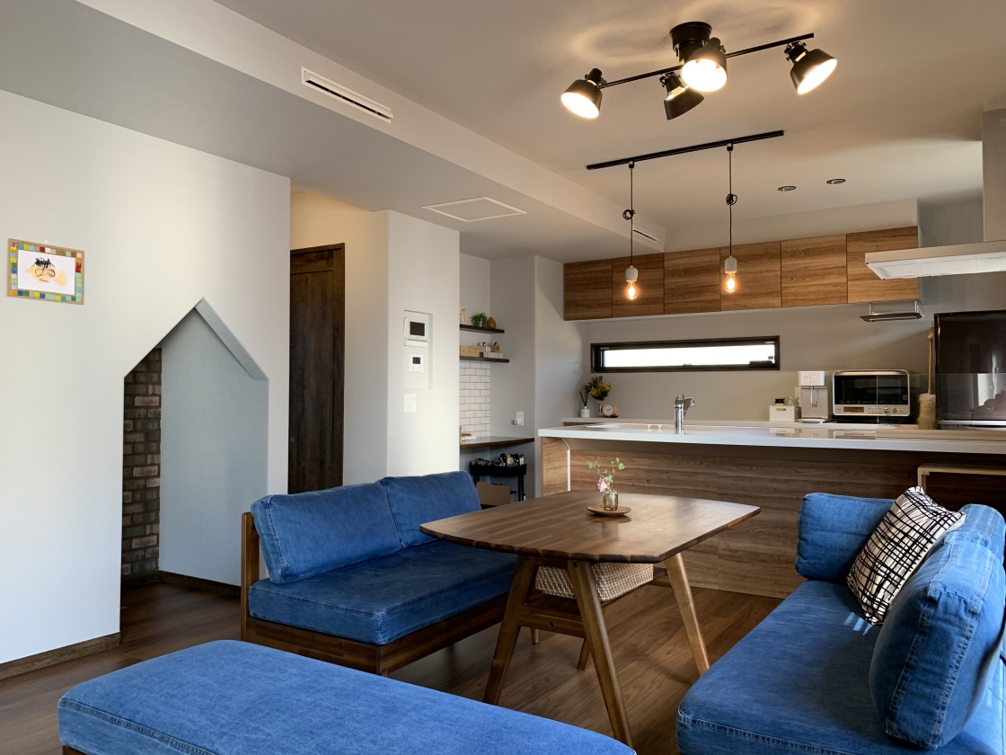 家族の団らんを育む、LDK + キッズスペースの回遊性のある空間展示場名