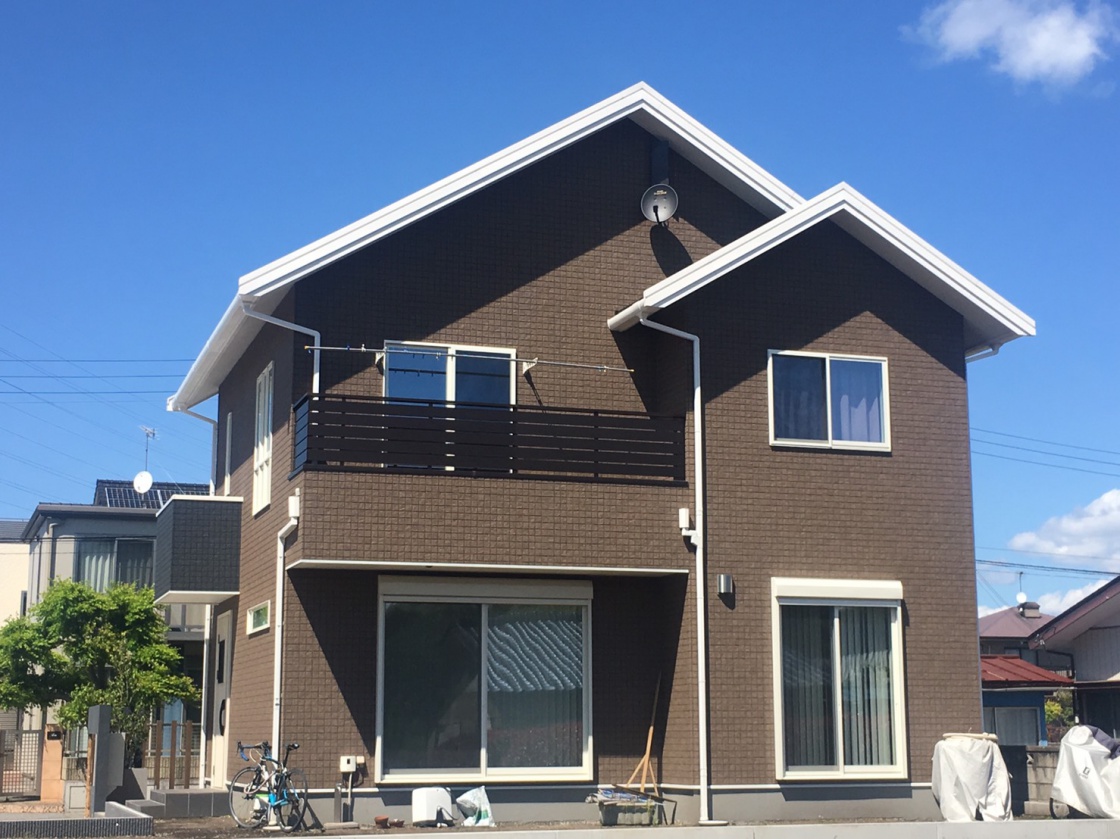 外観はナチュラルで、ブラウンにメリハリのある白の軒先システムです。洋風でかわいらしく見えます。