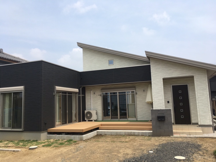 お子様の遊び場にピッタリな広々としたウッドデッキがある平屋のお家です♪